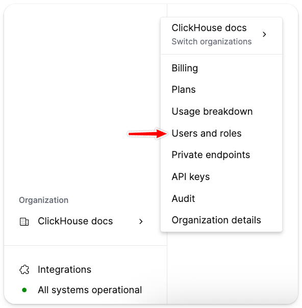 - When the user logs in to ClickHouse Cloud they will automatically be assigned the